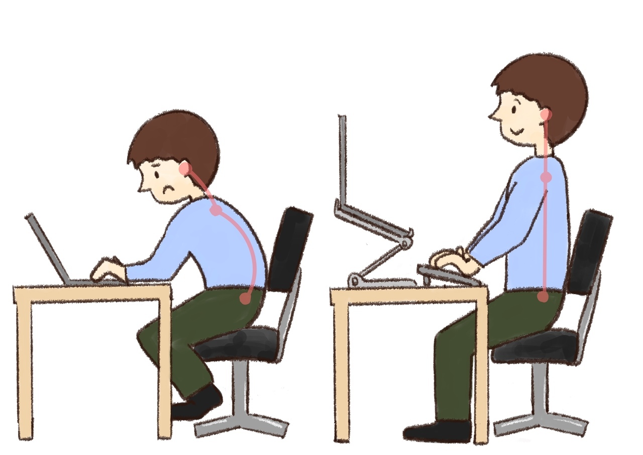 本来首の骨は弓なりに後ろへカーブしていて、このカーブがクッションとなって頭の重さが分散しています。